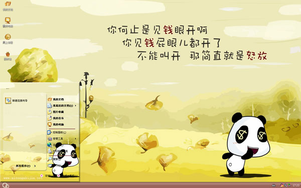 金钱虽然不是万能的,但是没有钱却是万万不能的,至少有钱还能使鬼推磨,在这个现实的社会中,是有温暖是有人心,但是没有钱就可能阻挡了一切。在熊猫猫娃娃的金钱论里,它只见钱,它有句经典话语:你何止见钱眼开,你见钱屁眼儿都开了,不能叫开,那简直就是怒放。幽默诙谐的语言,道出了多少人的心声。