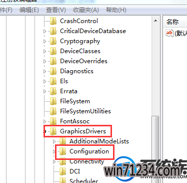 4.与上述操作步骤一样,依次找到ControlSet001---Control---GraphicsDrivers------Configuration