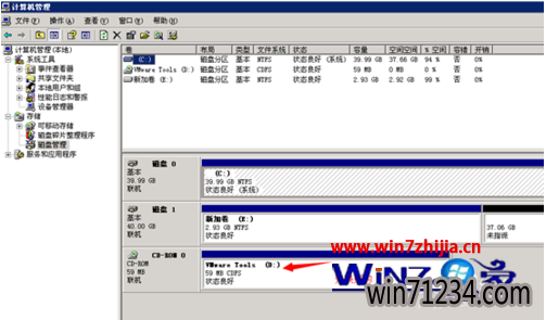 1、通过我的电脑,右键管理进入磁盘管理器。如下图,思路是先把光驱的D分区改成别的,然后E盘改成D盘;