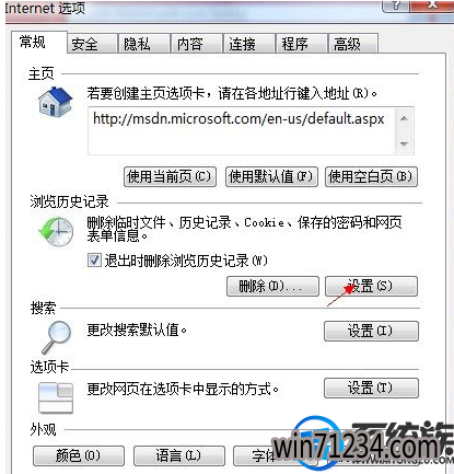 3.然后打开刚才的那个“Internet选项”对话框,点“设置”按钮
