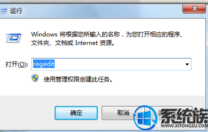 2.在“开始”菜单的“运行”中输入Regedit,