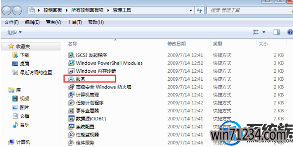 3.在管理工具中找到“服务”,双击打开,如图所示: