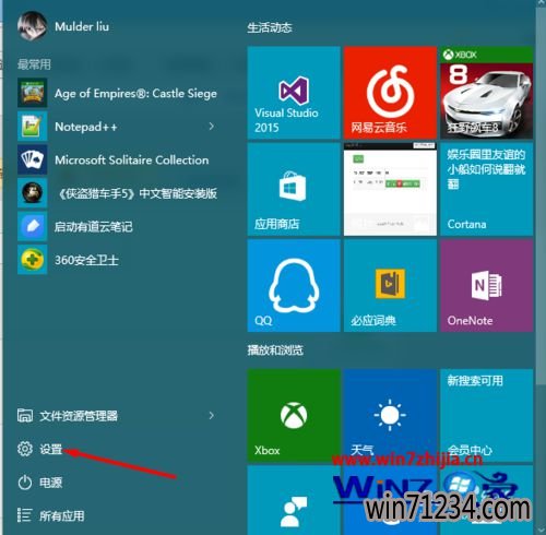 1、打开开始菜单,在开始菜单的左下角找到设置选项;