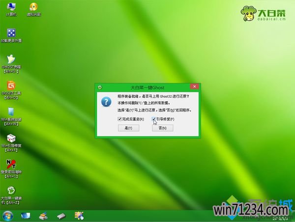 8、弹出这个提示框,勾选“完成后重启”和“引导修复”,点击是开始执行还原过程;